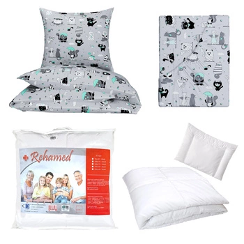Zestaw pościeli 100x160 + 50x60 + prześcieradło we wzorze 80x160 | 198Pro | szaro różowa | misie pandy