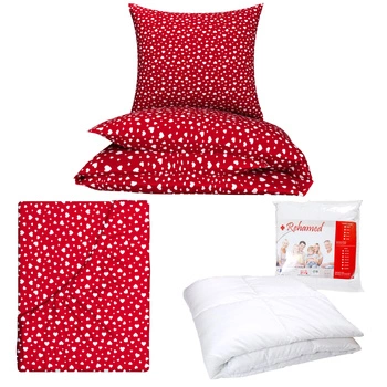 Zestaw pościeli 100x160 + 50x60 + prześcieradło we wzorze 80x160 | 444bia | bało czerwona | serca walentynki
