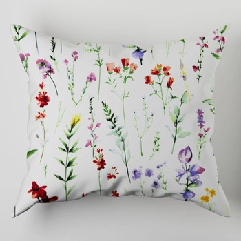 Poszewka bawełniana na poduszkę 50x50 | 033pas | biała | kwiaty malowane