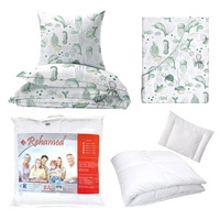 Zestaw pościeli 100x160 + 50x60 + prześcieradło we wzorze 80x160 | 235zie | biało zielona | morski