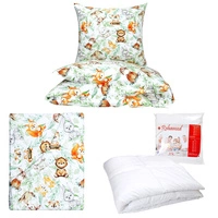 Zestaw pościeli 100x160 + 50x60 + prześcieradło we wzorze 80x160 | 014now | biało niebieska | zwierzątka leśne