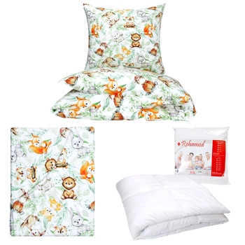 Zestaw pościeli 100x160 + 50x60 + prześcieradło we wzorze 80x160 | 502kol | kolorowa | zwierzątka króliczki