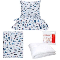 Zestaw pościeli 100x160 + 50x60 + prześcieradło we wzorze 80x160 | 404blu | niebieska | koparki