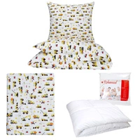 Zestaw pościeli 100x160 + 50x60 + prześcieradło we wzorze 80x160 | 404bzo | biało żółta | koparki