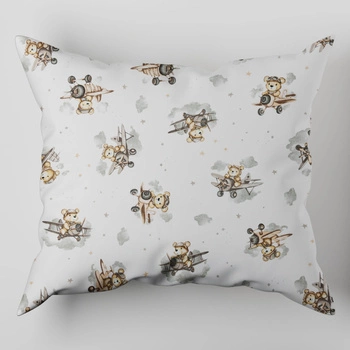 Poszewka bawełniana na poduszkę 40x60 | 303Sbe | biało beżowa | misie samoloty