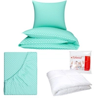 Zestaw pościeli 100x160 + 40x60 + prześcieradło we wzorze 80x160 | groszki miętowe | miętowa | grochy