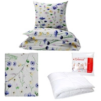 Zestaw pościeli 100x160 + 40x60 + prześcieradło we wzorze 80x160 | 348bia | biała | kwiaty bratki