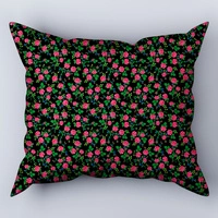 Poszewka bawełniana na poduszkę 40x60 | 119cza | czarna | róże góralskie