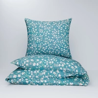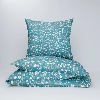 Pościel bawełniana 200x200 + poszewki na poduszkę 2*70x80 | D205mel | zielona | kwiaty