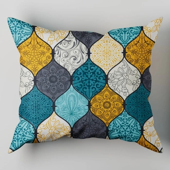 Poszewka bawełniana na jaśka 40x40 | 163trk | żółto turkusowa | boho