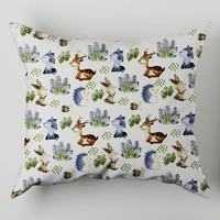 Poszewka bawełniana na poduszkę 50x50 | 014now | biało niebieska | zwierzątka leśne