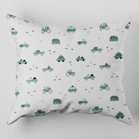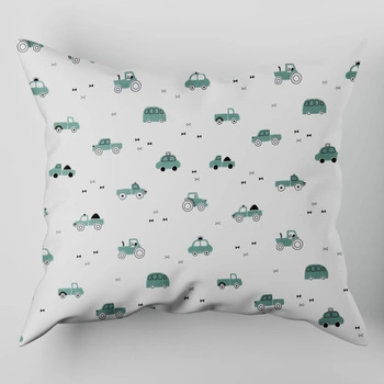 Poszewka bawełniana na jaśka 40x40 | 486b-z | biało zielona | pojazdy autka