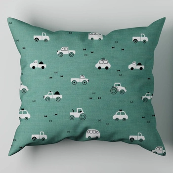 Poszewka bawełniana na jaśka 40x40 | 486zie | zielona | pojazdy autka