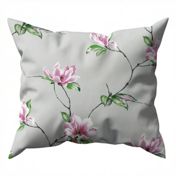 Poszewka z kory 40x40 | 075s-r | szaro różowa | kwiaty lilie