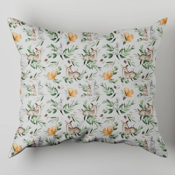 Poszewka bawełniana na poduszkę 50x50 | 314wie | biała | sarenki i króliczki