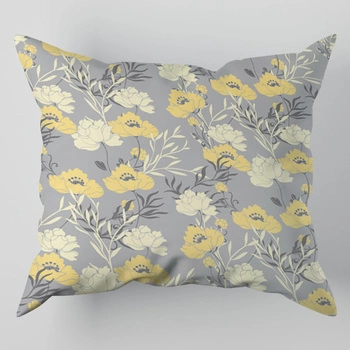 Poszewka bawełniana na poduszkę 50x60 | 219zol | szaro żółta | kwiaty