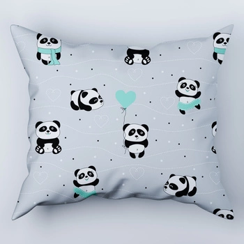 Poszewka bawełniana na poduszkę 40x70 | 198Pmi | szaro miętowa | misie panda
