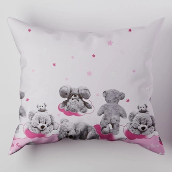 Poszewka bawełniana na jaśka 40x40 | 139róż | różowa | misie 3D