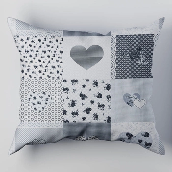 Poszewka bawełniana na poduszkę 50x70 | 137sza | szara | patchwork serca