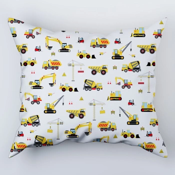 Poszewka bawełniana na poduszkę 40x60 | 404bzo | biało żółta | koparki