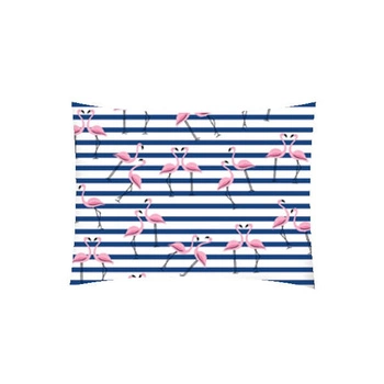 Poszewka bawełniana na poduszkę 50x50 | 153granat | biało granatowa | flamingi pasy