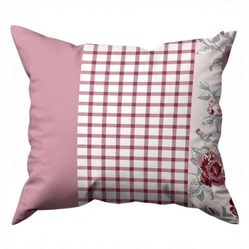 Poszewka z kory 40x40 | 063roz | szaro różowa | róże i pasy