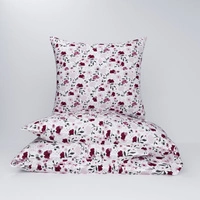 Pościel bawełniana 140x200 + poszewka na poduszkę 70x80 | 415bor | biało bordowa | kwiaty bratki