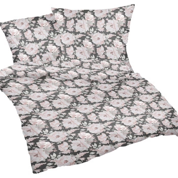 Pościel flanela 140x200 + poszewka na poduszkę 70x80 | 116sza | szara | kwiaty lilie