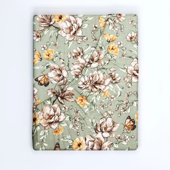 Prześcieradło z gumką do łóżeczka 60x120 bawełniane | 359oli | oliwkowe | kwiaty
