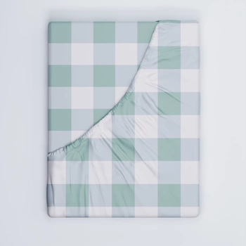Prześcieradło z gumką do łóżeczka 90x160 bawełniane | krata szałwia | miętowe | kratka