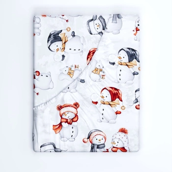 Prześcieradło z gumką do łóżeczka 60x120 bawełniane | 414bia | białe | bałwanki