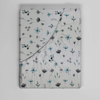 Prześcieradło z gumką do łóżeczka 90x190 bawełniane | 324b-s | biało szare | liście miłorzębu