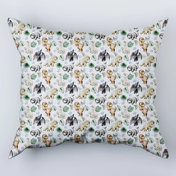 Poszewka bawełniana na jaśka 40x40 | 016Sko | biało zielona | dinozaury