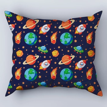Poszewka bawełniana na jaśka 40x40 | 202cie | granatowo pomarańczowa | planety kosmos