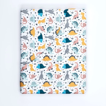 Prześcieradło z gumką do łóżeczka 60x120 bawełniane | 411bia | białe | dinozaury