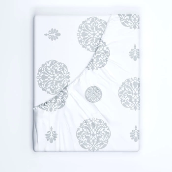 Prześcieradło z gumką do łóżeczka 60x120 bawełniane | 388bsz | biało szare | ornament