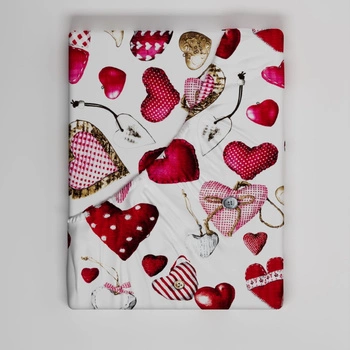 Prześcieradło z gumką do łóżeczka 70x160 bawełniane | 073b-c | biało czerwone | serca walentynki