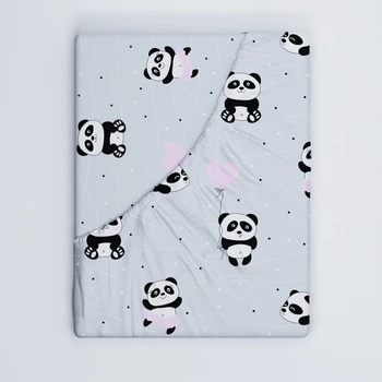 Prześcieradło z gumką do łóżeczka 90x180 bawełniane | 198Pro | szaro różowe | misie pandy