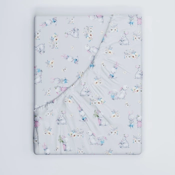 Prześcieradło z gumką do łóżeczka 40x90 bawełniane | 502sza | szare | króliczki