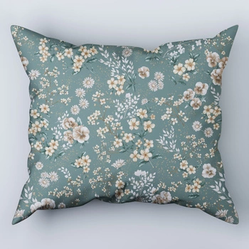 Poszewka bawełniana na jaśka 40x40 | 205zie | szałwiowa | kwiaty