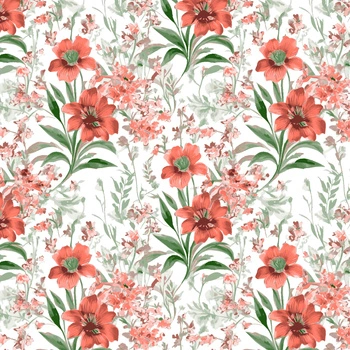 Pościel bawełniana 200x220 + poszewki na poduszkę 2*70x80 | 382Ncz | czerwona | kwiaty