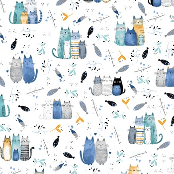 Pościel bawełniana 140x200 + 70x80 + 40x40 | 432nie | biało niebieska | koty pupile