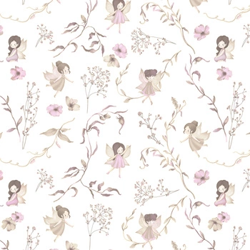 Pościel bawełniana 200x220 + poszewki na poduszkę 2*70x80 | 154pas | beżowo różowa | wróżki i kwiaty