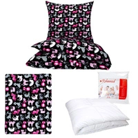 Zestaw pościeli 100x160 + 40x60 + prześcieradło we wzorze 80x160 | 432ama | czarno różowa | koty