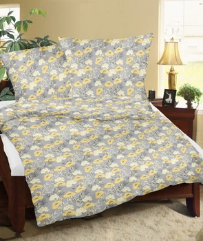 Pościel dla dziecka bawełniana 100x140 + poszewka na poduszkę 40x60 | 219zol | szaro żółta | kwiaty
