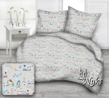 Pościel dla dziecka bawełniana 120x160 + poszewka na poduszkę 50x70 | 303sza | szara | ciuchcie pociagi