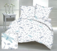 Pościel dla dziecka bawełniana 120x180 + poszewka na poduszkę 50x60 | 129b-t | biało turkusowa | ważki