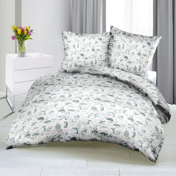 Pościel bawełniana 140x200 + poszewka na poduszkę 50x60 | 210zab | zielona | koty żabki słonie