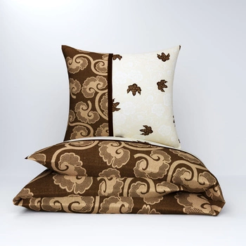 Pościel flanela 160x200 + poszewki na poduszkę 2*70x80 | 399bra | brązowa | kwiaty