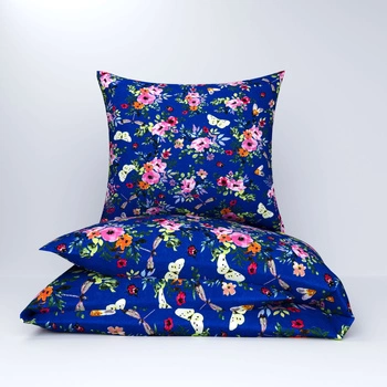 Pościel bawełniana 160x200 + 70x80 + 40x40 | | 348Mgr | granatowa | kwiaty i motyle | granatowa